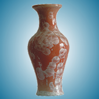 结晶釉又名晶花釉,产品是釉体中的硅酸盐熔质过固相反应之后,在冷却过程中自然析出晶体的一种华丽多彩制品。