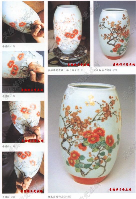 清看戴荣华古彩作品《天寒花自香》瓷瓶创作步骤: