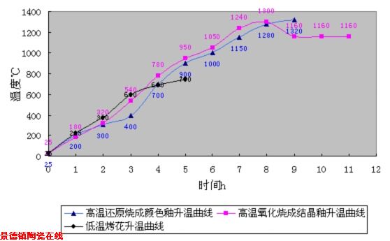 1、引言 现代艺术呈现出多元化发展态势的今天,“陶艺”这门艺术正日益被大众所熟知。各大专院校的陶艺专业大量兴起,陶艺教育也在各个院校占据越来越重要的位置,但是陶瓷艺术教育有别于许多其它的艺术教育,其在创作中既需要有艺术审美眼光的把握,也对工艺技术有着严格的要求。 窑炉烧成是陶艺创作的最后一道、也是最关键的一道工序,如同描龙画凤后的点睛。一般来说陶艺工作者并不一定需要自己亲自烧窑,制瓷行业内分工非常细,不同的工序都有专门的行家进行操作。陶艺家通常只要将自己的作品交给专门的窑厂代为烧制就行了。但是近年来由于陶艺制作的普及化,新型的、适合陶艺工作室的小型窑炉出现了,这些小窑炉采用煤气或电作为能源,自动控温使用方便,所以越来越多陶艺工作者以自己拥有窑炉并掌握烧成技术为豪。但是无论是否能亲自烧窑,对于陶艺工作来说掌握一些窑炉烧成的基本技术对陶艺创作是非常必要的。 2、新型燃气节能梭式窑设备的性能及特点 新型燃气节能梭式窑它具有占地少、投资少、保温性能良好、节约能源、窑内温差小、气氛压力温度均匀、易于操作且对环境无污染等优点。 窑炉结构包括窑门、火膛、炉床、烟囱四个部分,作品就放在炉床里。窑炉内有效尺寸即炉床的长×宽×高。有效容积可根据教学和创作的需要分为三个级别,大窑 1.0~2.0m3 (教学集体烧成使用);中窑 0.5~0.8m3 (创作烧成使用);小窑 0.1~0.3m3 (实验教学和实验创作使用)。窑炉内衬全是230mm厚的高铝轻质砖, 外侧是硅酸铝纤维, 厚度60~ 80mm。烟囱位于窑体后部上方为不锈钢材质。燃料为液化石油气,利用液化水浴装置供热进行燃气汽化。产品运载方式由窑车运载,窑具为碳化硅质棚板和支柱。 3、新型燃气节能梭式窑的烧成原理及操作 陶瓷工艺方面就重要性来说,可以分为“一烧,二土,三制作”,从某种意义来说烧窑是何等重要。烧成的方法大体分为氧化焰烧成和还原焰烧成两种。氧化焰烧成即是在烧制过程中,窑内一直都是充分的氧气燃烧,直至最后烧成。还原焰烧成是当窑内温度上升至950~1000度左右之后,通过调整燃料供给量及燃烧器的风门,使窑内的助燃空气相对燃料供给不足。艺术陶瓷的烧成经常因为装饰要求的不同,而有不同的烧成次数和烧成方法。 3.1装窑 装窑之前,应首先按照坯体的高度和大小进行归类,并准备好所需的棚板和支柱。棚板的摆放通常是采用三点支撑,有时也可以采用四点,但稳定性较差,可以垫粘土球或铝粉找平。棚板之间及棚极与窑壁间要留有适当的空隙,有助于热能的流通。 装窑时坯体应按“上紧下松”的原则装入窑车,这样有利于减小窑内的温差。每块棚板均需摆放平稳后方可将坯体放置其上,以免造成窑壁或坯体变形。“上紧下松”原则,一般是造型单纯的小件坯体放在底高盘类敞口的器物置于中间;大件坯体放在上层。在同一层面上,外形较大的坯体先放,小件坯体填空位。 3.2烧成制度的制定 窑炉的烧成制是根据坯釉料的组成和性质、坯体的形状、大小和厚薄,以及窑炉结构、装窑方法、燃料种类等因素确定的。 日用瓷窑炉的烧成制度主要包括温度制度,气氛制度和压力制度。这三个制度之间互相影响,密切关联。温度和气氛根据不同产品的不同要求而确定,压力制度则是保证温度制度和气氛制度实现的条件,这三个制度通过合理的燃料输入(调控入窑的燃料输入阀、风门大小等)以及排烟量(烟囱闸板控制调节)并结合烧成时间和装窑方式等参数的合理配合来实现的。温度制度包括升温速度、烧成温度和保温时间长短以及冷却速度快慢等参数。不同类别的产品有不同的温度制度要求,烧窑前应先确定烧成制度然后再进行烧成操作,几种常见的烧成升温制度见图1。