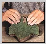 2.用泥滚在叶上滚压,加深纹理,压至叶片微微嵌入泥片。 | |