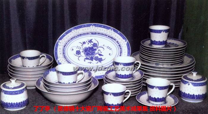 (题图:荣获1986年德国莱比锡国际金奖产品,青花玲珑清香45头西餐具)