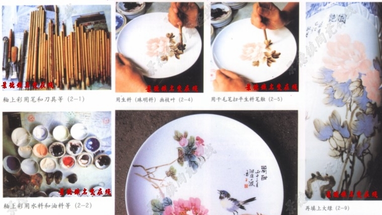 除上述两种“粉彩”的特殊工艺外,其余不论是山水、人物、花鸟、走兽、或名家作品,或高级、重工粉彩其制作过程和基本技法都大同小异,笔者由于学的专业是粉彩,毕业后曾在粉彩王国的艺术瓷厂绘制十年粉彩,现在又在景德镇陶瓷职大美术班任教粉彩十多年,对粉彩有较深厚的感情和全面了解,以前各门派各画种、各工序之间比较封闭、保守,即传手艺也较片面,通过我个人几十年的经验和对各门派,画种、工序的归纳。现在景德镇粉彩基本技法全面,系统地总结出来,希望对继承、宏扬这一优秀陶瓷文化、对初学粉彩艺术的青年一代有承上启下,抛砖引玉的作用。