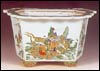| 雍正朝是清代斗彩瓷器烧制最成功 的时期,其器皿从纹样布局到色彩的配 合,以及填彩的工整程度均比康熙朝进 步。其成就主要反映在两个方面:第一, 在传统的斗彩呈色中增加了金红,并在 斗彩中融入了粉彩的渲染技法,不仅增 加了色彩,而且打破了成化斗彩一件 衣、花朵无阴阳向背的特点。第二,雍 正的斗彩绘画较以往的更为精细,釉上 的各种色彩都准确无误地填于纹样轮廓 线内。 雍正斗彩的形制十分丰富,所见器 物有两类,小部分是仿成化斗彩的,如 天字罐、鸡缸杯、马蹄杯等,更多的是 当时流行的造型,如盘、碗、杯、碟、灯 座、长方花盆、提梁壶、菊瓣形尊、天 球瓶、如意耳蒜头瓶等。图案以花鸟、竹、 凤、瓜果、松鹿、芭蕉、梅雀、龙纹、暗 八仙等为典型。 |