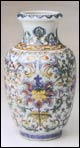 | 乾隆斗彩器具有器型变化多端、装 饰华丽繁缛、色彩绚丽缤纷的特点。传 世斗彩器各种器型均有,特别是高达50 至70厘米的大型斗彩器尤为流行。除通 体一种斗彩装饰外,乾隆的斗彩还常与 五彩、粉彩、珐琅彩、黑彩等品种组合 在一件器物上,这种斗彩与其他品种组 合的装饰是前所末有的。除此之外,金 彩在乾隆的斗彩中广为运用,金彩的流 行.使乾隆斗彩显得更加富而堂皇。器 型主要是盘、碗、瓶、罐、高足碗、花 觚、盒等,乾隆官窑斗彩纹样大多是按 朝廷送来的样稿或按圣旨要求设计的, 纹样大多寓有一定的吉祥含义,以缠枝 莲花、双鱼、灵芝、八吉祥等各种祥瑞 物组成的寓意"吉庆有余"、"福禄长寿"、 "富贵大吉"等四字吉语纹样为流行。 乾隆以后,斗彩瓷器的生产虽然始 终未停止,但制作工艺日趋衰退,图案 工整呆板,缺少变化。 |
