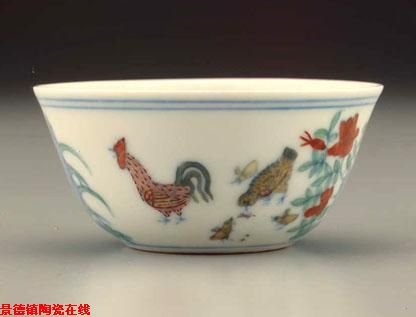 在中国陶瓷工艺发展史上,金代磁州窑系统已有红、绿、黄彩等相结合的釉上彩制品。明宣德时,斗彩初露芳容。从西藏日喀则萨迦寺收藏的大明宣德年制款斗彩鸳鸯莲荷纹碗和1988年11月景德镇明御用窑厂遗址出土的斗彩鸳鸯莲荷纹盘,可窥一斑。台湾故宫博物院收藏品中亦有相同于景德镇御窑厂出土的成化鸳鸯莲荷纹盘,它们的装饰题材、构图设色、描绘技法与宣德器如出一辙,只是彩色较宣德薄匀鲜亮,画面效果稍稍不及宣器生动自然,略显拘谨。显然,声名赫赫的成化斗彩是在宣德斗彩成就基础上发扬光大的。青出于蓝而胜于蓝,成化斗彩在胎质、色釉、装饰、工艺技法、品种诸多方面都高出宣窑。成化御用斗彩器,分别收藏于北京故宫博物院与台湾故宫博物院。由于是宫廷御用珍赏品,制品少而精粹。在明万历朝成化斗彩已身价倍增,“本朝窑器,用白地青花间装五色,为古今之冠,如宣窑品最贵,近日又贵成窑,出宣窑之上”。“至于窑器最贵成化,次则宣德。杯琖之属,初不过数金,……顷来京师,则成窑洒杯每对博银百金, 予为吐舌不能下。”(明《万历野获编》),清初程哲在《蓉槎蠡说》中亦称“神宗时尚食御成杯一双已值钱十万”明朝人把成化斗彩当作圭宝,清朝人把成化斗彩视为拱璧,帝王和贵族上层尤其珍重之。清宫内各府造办处档案记“雍正七年四月十三日,交来成窑五彩磁罐一副(无盖)。奉旨,将此罐交年尧添一盖,照此样烧造几副”,可见雍正帝的嗜爱。