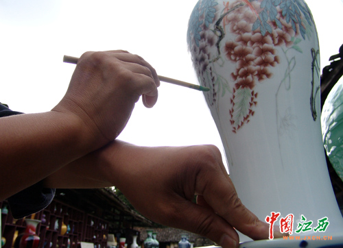 了了亭 景德镇陶瓷艺术馆 资讯: 粉彩瓷又叫软彩瓷,景德镇窑四大传统名瓷之一,是以粉彩为主要装饰手法的瓷器品种。粉彩瓷器是清康熙晚期在五彩瓷基础上,受珐琅彩瓷制作工艺的影响而创造的一种釉上彩新品种,从康熙晚期创烧,后历朝流行不衰。尤其是保留至今的很多古代粉彩瓷虽历经沧桑,仍能再现明、清时代的繁荣,折射前人陶瓷艺术的高超、绝妙,具有很高的研究价值,为我们今天发掘美术资源,探讨传统美术文化,创新陶瓷艺术提供了范例。
