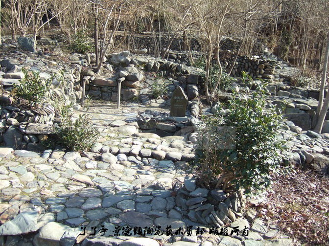坝 在大沟中用石料砌坝拦水,使提高了水位的水沿小沟流到水碓边。. 水沟 建鼓儿碓多是三个碓共用一条沟,其长度随碓的所在地而定。 ; 螃 鼓儿碓的车网是受从上而下的水的冲击力而转动的,故要用石料砌螃。一个鼓儿碓砌螃长3.5米,高2.4米,螃下装碓,螃上装水槽。 水槽 装在进水沟的侧面,长约2米,宽约75厘米,高约15厘米,飘出螃外1.2米。进水口处安闸门,高约30厘米,出水口高出鼓儿6厘米。水从上对着鼓儿冲下。 鼓儿 也就是车网,结构与下脚龙碓相仿,只是要小得多,但有些名称与下脚龙不同。规格有三种:第一种的直径只有1.1 6米,车叶子也有1.16米;第二种的直径有1.5米,车口十子也是1.5米:第三种鼓儿更大。前两种都是舂4根碓栅,后一种舂6根碓栅。因直径小,用4根与直径长度相同的木料,宽约6厘米,厚约8厘米,分两边一纵一横组成“十字坊”, 穿过车心轴,外弯紧贴十字坊, 内弯又紧贴外弯,合成大弯。在外周围,每隔l 3厘米,就有一块“口板”穿过内弯和外弯。口板内又围一圈“筒板”,组成车叶子。口板共28块,长约1.1米,宽约l 6厘米。为了挡住鼓儿旋转带来的撒开的水,在碓棚一侧,安一块宽约l,3米,高约1.5米的板壁,叫“水仓”。 车心轴 长约3.2米,直径约30厘米,削成8面形,鼓儿在车心正中段,两头各钉铁轴头,搁在车凳上。车凳是两根木料,直径约20厘米,长约2.5米,横跨水槽螃下的下 水道。水槽两边,各安水枧滴水到车心转轴处。 碓拨 共4根,分别安在鼓儿两侧,穿过车心。 碓栅和缭车碓一样,用腰闩;眠牛、马叉(又叫木耳朵)。有的也和下脚龙碓一样,用葫芦搁在马叉上旋转。 碓脑 共4根,长度只有80到90厘米。 碓嘴 生铁铸成,只有10公斤。 碓臼 有4个的,也有6个的,长约90厘米,宽约4 5厘米,安在鼓儿前方,分两边排列,多是石板为料。 建造水碓的木工为专门技术工,不要求刀刨光滑,但计算要特别精确,尤其是缭车碓的两个关键:一是水槽与车网的距离,二是车心轴16面打的眼的位置,均不能有丝毫差错,否则会造成停碓不转。木工对这两个关键技术从不公开,只传一个儿子,每次安装水槽,都是带这一个儿子下水,即使在四九寒天也是如此。哪个水碓为某一木卫所建,这位木工就成了这个水碓的包修工,可得长年包修费。 (四)淘洗制造 摊棚是矿石粉碎后进行制不的场所。主要设备如下: 淘塘 面积2平方米左右,以青砖垫底,四周用砖砌成矮墙,高约l米。底部为坡形,靠淀塘一侧深约l米,另一侧约50厘米。 淀塘面积约9平方米,深约80厘米,与淘塘一墙相隔,半腰处有-一小洞,泥浆从淘塘经小洞注入此塘。泥浆澄清后,水又经小洞回流到淘塘。祁门矿区则用直径2米,深l米的大木桶淘洗泥浆。 干塘 只有鼓儿碓设干塘,面积3至4平方米不等,深约1米。缭车碓和-F脚龙碓不设干塘,满棚摊开半干湿的泥浆堆,让其自然干燥。摊棚也因此得名。 · 桌子 制不专用桌,长约2米,宽约40厘米,高约70厘米,也有80厘米的,桌面厚约7厘米。 盒子 制不专用木盒,呈“井”字形,后面一根木料是活动的,可以脱落。内空20X 14 X 5厘米,—下面的木板另配,面积稍大于盒子,后面安一柄。瑶里釉果的盒子大于此。 吸水砖 加速干燥的青砖。 货架 晾干不子的架子,以横木作档,四面不用板。长约2.5米,高约1.4米,分5层,每层高约27厘米。数量根据厂的大小而定。 其他 八磅、四磅、一磅铁锤各一只,铁淘耙一把,铁板耙一把,另有土箕、木勺、.钢丝弓等。 碓产向矿主购买矿石后,用独轮车运到河边,,再用船运到水碓边。下脚龙碓和鼓儿碓多设在水沟旁,那还要用独轮车将矿石又从河边运到碓旁边。 东河和南河在春夏期间水满,秋冬水浅,所以船运也必须在前两个季节进行。里村有一叫方昶的碓广,秋季要矿石使用,因水浅,他雇来好几个竹排装矿石。竹排吃水浅,便于航行,可却引发了船帮的讼诉。浮梁县法院裁定:碓广雇请船只或竹排任其自由,不受限制。此后,装运矿石四季皆有。 装来的矿石倒在河边或沟边,让水冲涮余泥,之后,用八磅铁锤打碎,再用一磅铁锤敲成鸡蛋般大小的石块,然后倒进碓臼。碎石舂成细末后,双手抱住碓脑,挂在预先吊好的绳索或篾环上,用铁勺将粉末舀起,过筛倒进淘塘。 当取了五臼细末,淘塘就加水,用铁耙来回搅动,搅成浆糊状后,用木勺舀到淀塘里。淀塘里的泥浆约淀六小时后,放开隔墙半腰的洞孔,淀塘里上面的清水回流到淘塘,再用木勺将泥浆舀到干塘,或者舀到清扫后四周用泥巴作拦坝的地下,让其自然干燥。泥干燥到可以成堆而不下沉时,便可制不。 制不时,先将湿泥搬到桌上,堆成小堆,另把托板托着木盒放在桌上,抓一把干粉末,撒在盒子内空和四角,再抓一团泥,揉成圆状,用力搭在盒子里,再用手拍紧,然后用钢丝弓锯掉余泥,盖上碓户牌号印,退开盒子后面的活档子,取下盒子,托板托上湿泥坯,侧着放在货架的吸水砖上,一块不子便制成了。 · 缭车碓车身大,动力足,碓臼多,在雨水均匀时,每车年产量可达14万块。但对水源要求特别高,故建造得比较少。下脚龙碓对自然条件的要求适中,建造最多,每车年产量约5万块。鼓儿碓虽然造价不高,但动力有限,每车年产量只有2万块。这三种碓的建造,使大小河流和大小水沟的水力资源,得到了充分的利用,既降低了加工成本,又保证了景德镇产瓷原料的供给。但也受到自然条件的限制,雨水好的年份,可生产九个月,遇到干旱,则不到半年。 碓广雇工的不多,资本大的每