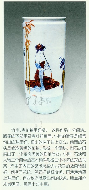 陶瓷艺术欣赏 《竹笛》青花釉里红瓶 作者:李一新