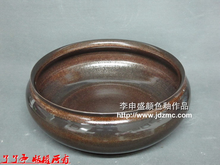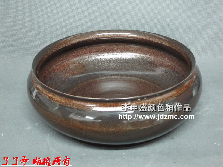 | 李申盛颜色釉作品:聚宝盆(黑金沙) | |||||