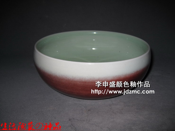 这件综合颜色釉作品为外壁郎红,内壁影青。之所以这样制作,是想将郎红的效果显现出来。只是第一次使用,感觉郎红还是比较难以控制的,其流动性和挥发性不好控制。