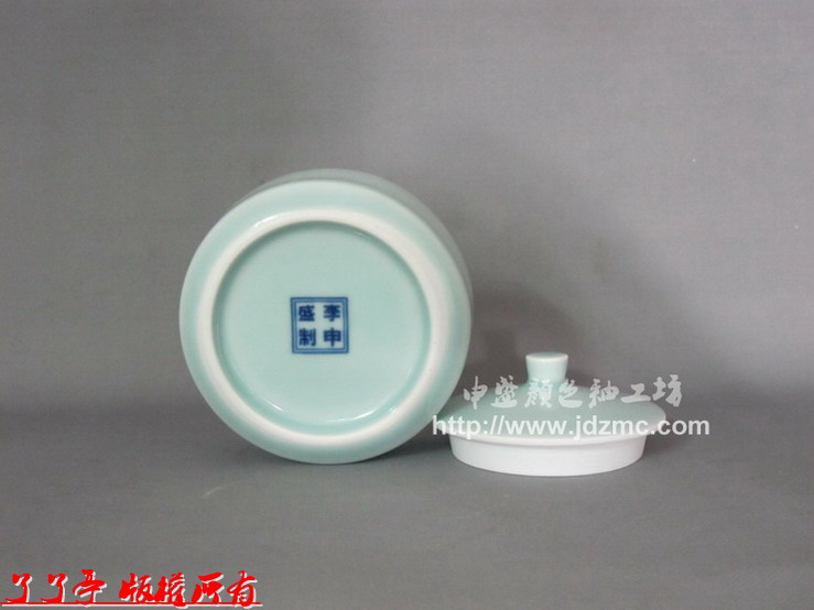 | 李申盛颜色釉作品:天青色 茶叶罐 高级陶瓷美术师 | |||||