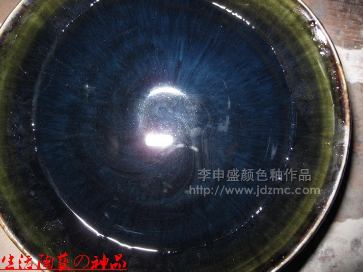 这是一件带光球效果的斗笠碗系,在碗的底部如果加入水,会产生一个强烈的光球,触手可及。而在没有水的时候,效果会有,但是不是那么明显。这个釉体,我折腾了很久,只能用斗笠碗才能产生如此神奇的效果。 前面四个图片未加闪光。 |