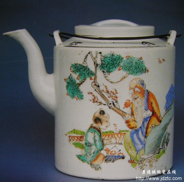 | 罗福□作·民国·五彩人物提壶 | |||||