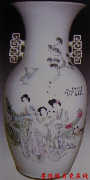 ![]() ![]() ![]() 桐华居作 粉彩佳人育婴图双耳瓶 民国十四年 1925年 |