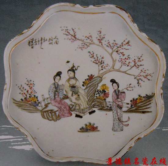 | 黄新发 粉彩桃花美女茶盘 民国时期 | |||||