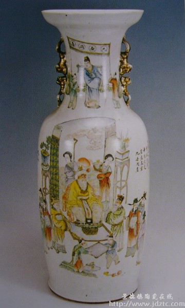 | 汪照藜《九世同堂图》双耳双面彩绘大瓶 | |||||