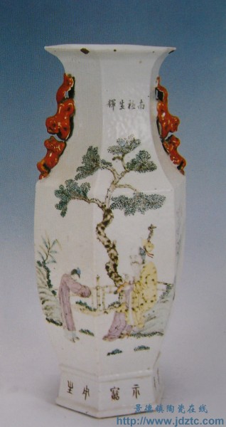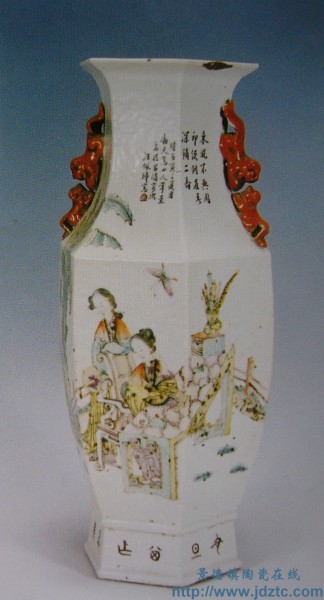 | 汪佩璋《二乔图》六方双耳瓶 | |||||