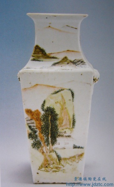 | 刘少通《人物山水图》兽耳瓶 | |||||