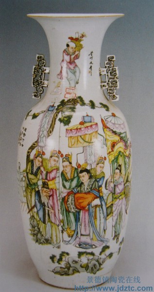 | 余钊《礼贤下士图》双面双耳彩瓶 | |||||