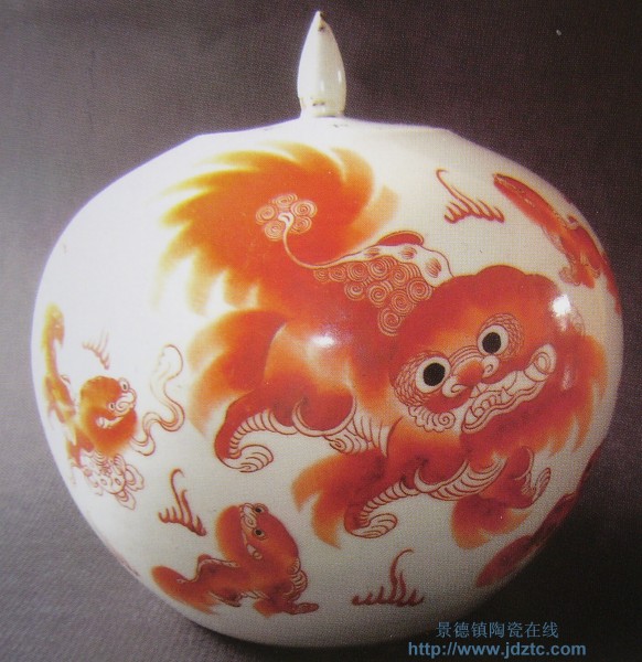 太少红狮 郑义福兴作 矾红西瓜盖罐 民国二年 易阳 |