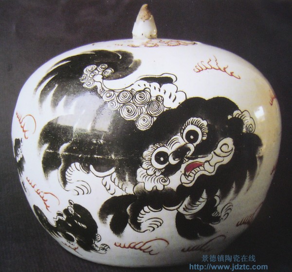 | 太少红狮 饶金泰作 墨彩盖罐 民国三年 | |||||