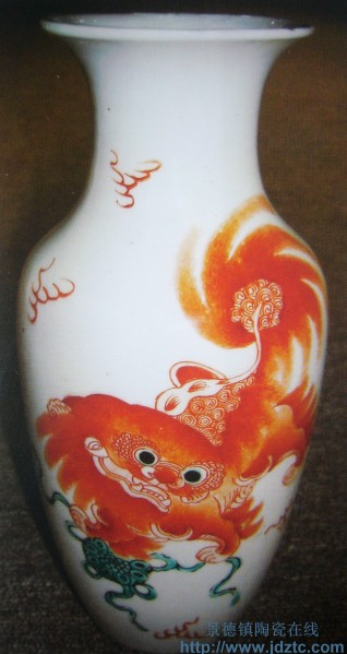 太少红狮 张源泰作 矾红赏瓶 光绪三十二年 易阳 |