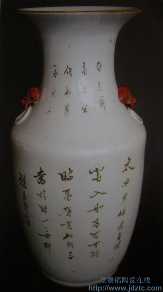 太少红狮 徐昌茂作 矾红赏瓶 民国十二年 易阳 |