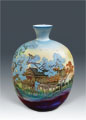 其创作思路开阔,善于发掘陶瓷材质本身的艺术表现力。作品风格清丽俊雅,意境深远,给人留下无穷韵味。