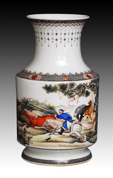 吕金龙,工艺美术师,九江人士,1981年生,擅长各种味道的釉中彩以及仿民国精品陶瓷、花鸟、人物、动物,尤其擅长山水。