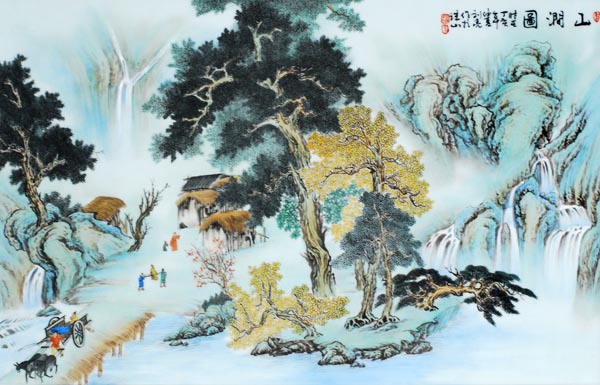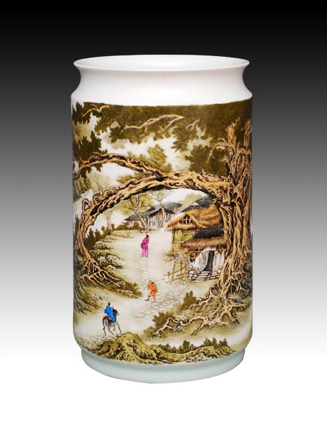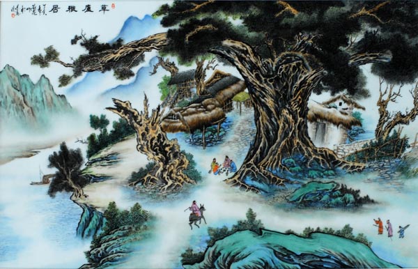 刘亮 号逸飞, 1976 年生于安徽,工艺美术师,美术家协会会员。从小受民俗文化的熏陶,对传统文化产生浓厚的兴趣, 1998 年开始涉足陶瓷艺术领域,从小专功于山水画,历经十几个春秋,如今自成一体,自创磨沙彩釉山水独具特色,所作山水集各家之长,在师法古人的基础上重写生、气之妙、洗以趣为先。代表作品有《草庐雅居》在华东六省市工艺品大赛获二等奖,作品深受广大收藏家的青睐。