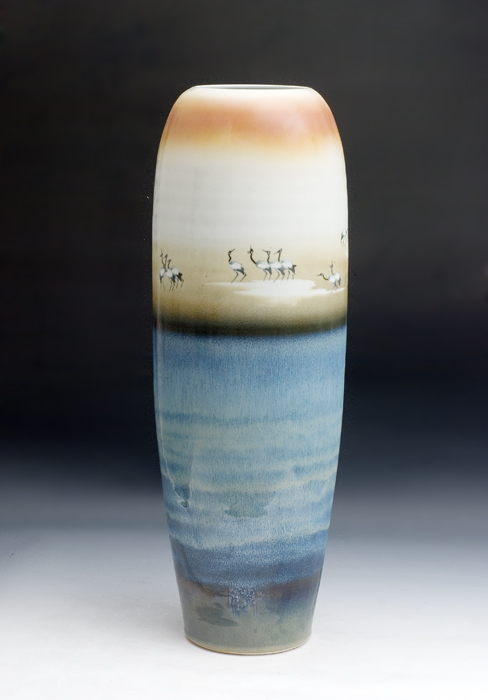 张文泉 1975年生,南昌人,毕业于南昌师范大学,现从事现代陶艺色釉装饰,其在色釉的合理利用与画面的意境,融合方面做的美满融洽,给人绚丽多彩、斑斓夺目之美,融工艺与画意为一体,在景德镇独树一帜,并受到专家高度评价,许多作品被海内外知名人士收藏。