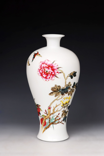 徐国明 江西丰城人,出生于1963年,高级工艺美术师。从事专业陶瓷美术创作已有30余年,现就读景德镇陶瓷学院,并拜在著名高级工艺美术大师“梅花大王”王鹤亭先生门下学习,在名师指导下,其在陶瓷美术方面深得造诣,尤擅花鸟、虫草。主要作品有《博古》、《四季飘香》。作品曾参加国际陶瓷节,恩巴精品大赛并取得好名次,作品深受陶瓷专家、收藏家的青睐。作品远销日本、韩国、东南亚、澳门等国家和地区。