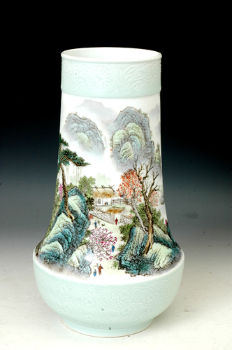 地址:江西景德镇市华阳商贸城南一路35号 现在他画山水画,平面大到3.3米瓷板,小到笔筒,每件都自由驾驭,而已件件有特色,有创意,其作品被国内外瓷商收藏。