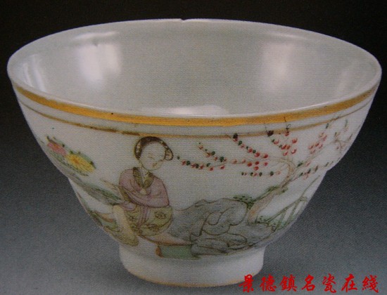 | 汪佩辉 粉彩桃花美女束腰碗 民国时期 | |||||