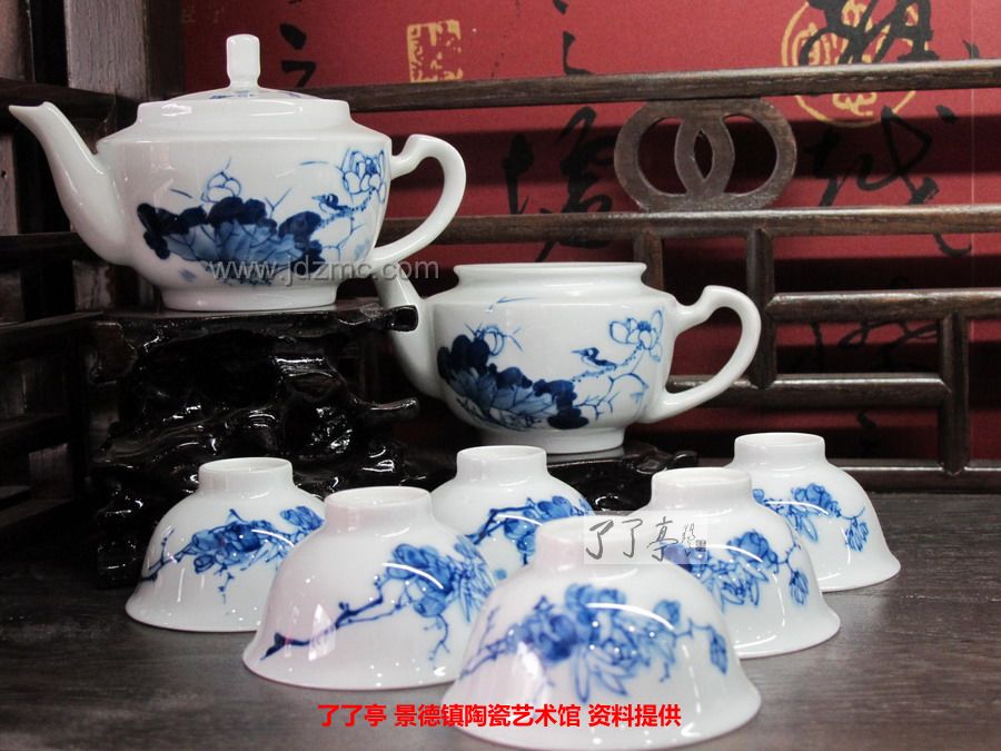 《荷塘清趣》景德镇陶瓷青花花鸟茶具-龙盛轩