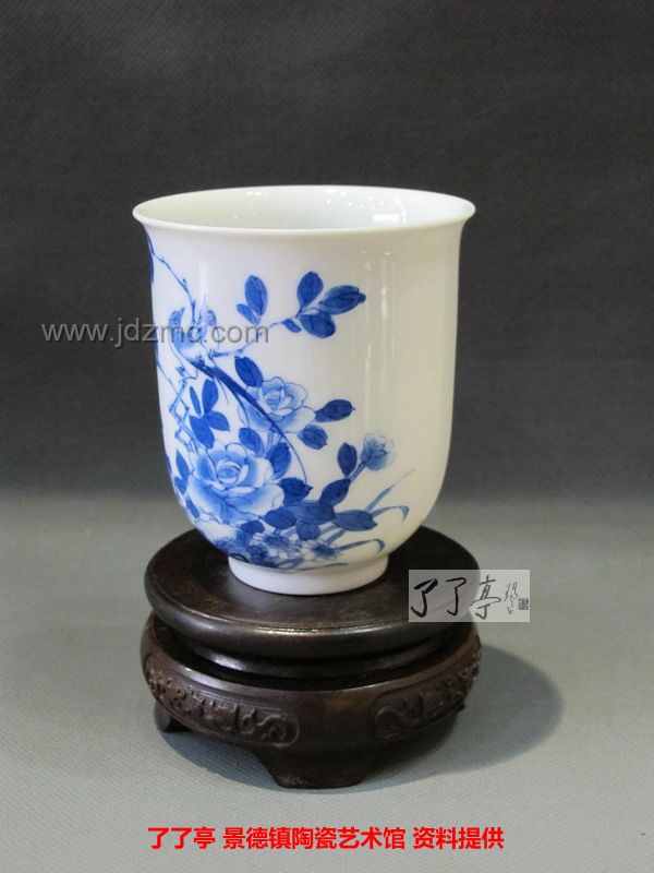 精品《四季花鸟》景德镇陶瓷青花手工茶杯-龙盛轩
