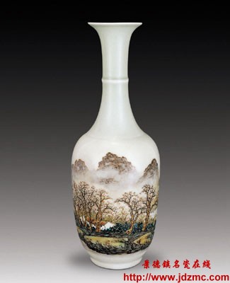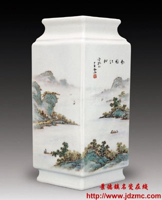 “汪派山水”第三代传人的代表是汪平孙,他是汪野亭之长孙,小亭之长子,今年已72岁高龄。自幼受家庭熏陶,1951年考入“江西省陶专”艺术系,但后来却做了一辈子中学语文教师,也正是这阴差阳错,给他打下了扎实的文化基础,使他日后的“回归”产生了“井喷”。1991年汪平孙退休后在景德镇建立画室,正式下海从事瓷画创作,继承了祖父的艺术流派。经过多年的刻苦探索,其作品构图不拘一格,笔触枯润兼施,设色雅致清秀,意境含韵深婉,既有其祖的传统,又有创新的清新。他的创作意境,正如他诗中所云:“千形万象入双瞳,默化潜移俱贯通。淘尽平庸天巧现,风光出自性情中。”