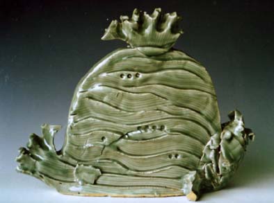金文伟专注陶瓷材料现代形态的表达,追求人与物的合谐关系,喜欢大刀阔斧、淋漓尽致地表现。 |