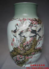 王德明 男,1966年10月出生于江西省景德镇陶瓷世家,工艺美术师。伯父王鹤亭人称“梅花大王”,受家庭熏陶,在中小学读书期间就酷爱艺术,高中毕业后师从大伯王鹤亭学画梅花,深得其真传。1983年进入景德镇艺术瓷厂,又得到彭元清、张景寿、邓肖禹等指点。2003年作品人选全国中青年陶瓷艺术家收藏精品大奖赛并获银奖。主攻粉彩花鸟,特别擅长梅花与仙鹤,作品深受海内外收藏家青睐.