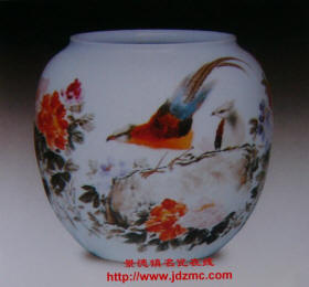 特的艺术风貌。深得海内外陶瓷收藏家和陶瓷爱好者们的喜爱,不少作品被港、澳、台商看中并重金购藏,其作品还多次参加全国、省、市级工艺美术类评比并获奖。作品200件《紫气东来》瓷瓶,150件《猫蝶长春》瓷瓶,200件