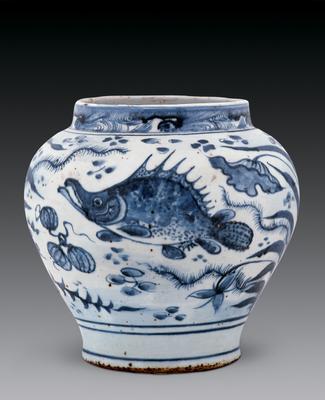 辨别元青花真赝主要在两个方面院一是观察其釉汁的色泽。由于“至正型”元青花上所用的透明釉在配方成分上、加工工艺上没有留下准确资料,仿元青花器上只能从色感、质感上照猫画虎式地配制。二是看釉中气泡的疏密大小与层次分布,以便分辨出是柴窑烧制还是气窑烧制。元青花现代仿品多用气窑烧制,窑温易控制,窑内温度均匀,气氛好掌握,烧制品成瓷率高,现代气窑无法完全重复瓷器在柴窑内烧制的复杂的物理、化学变化过程,特别是釉中气泡的疏密大小与层次分布表现。