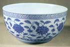 圆器 景德镇制瓷专用术语。指能在轮车上一次拉坯成型的器物,即平面型造型的瓷器,如碗、碟、盘等。(明宣德 景德镇窑青花缠枝牡丹纹大碗)