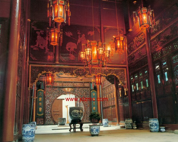 景德镇曾发现明代瓷行旧址:如汪家坦二号和花园里一号。瓷行是景德镇古代经营销售瓷器的商行和转运货栈,建筑因功能和使用需要而不区形制。开面可增至五开间,一般仍保持天井格局。为便于交通联系, 大多数增加开阔的轩廊或檐廊。梁架装饰大体保持明风,但做工和雕饰更为简炼。唯其门罩制作隆重,雕刻华美, 以示商行之实力。汪家坦二号石雕门罩仍取仿木形式, 以隔扇分成华板、心板和遮日板几段,均有生动流畅的花卉卷草浮雕。遮日板下有石雕月梁,月梁粗短肥硕,鼓形断面比木构更为夸张; 中央刻上龟锦包袱纹样,取锦秀延年吉祥之意,民间色彩极浓。花园里一号仅存构架, 内间改动已非原貌。构架粗壮,超过明钦安殿柱围。