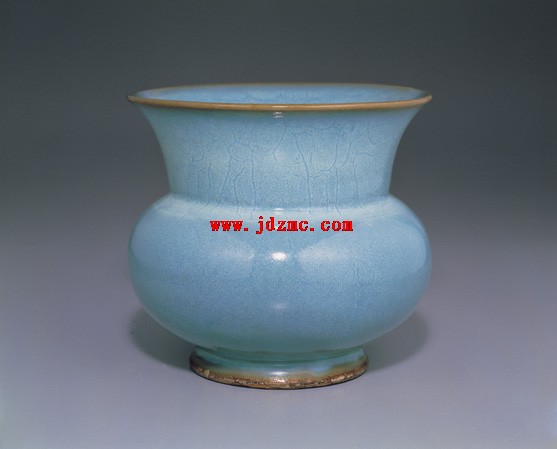 北宋时期官府在汝州设窑场,其产品称之为.汝窑.。.汝窑.出现的时期在越窑衰败之后,产品主要供宫中御用,御拣退之件,方许出卖,近尤难得。汝窑胎质细润,多数象点燃过的香灰色。透过釉底处微微带些粉色,不同于同时期的其他青瓷,风格独特,呈现一种淡淡的天青色,有的稍深,有的稍淡,但离不开天青这个基本色调。汝瓷釉汁莹润,多豆青、粉青、月白、葱绿等。通体有细片,底有芝麻细小支钉,是支烧的痕迹。现存故宫博物院的.汝窑弦纹尊(奁)、洗.,是古陶瓷中罕见的珍品。