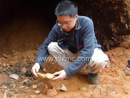 深圳市文物考古鉴定所助理研究员黄清华在现场研究
