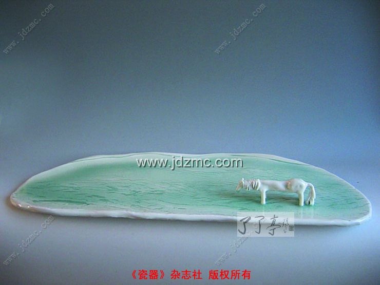 以雕塑的造型并结合陶艺的表现语言来进行青白瓷艺术创作,是现代青白瓷艺术中最有特色的话语方式。在传统青白瓷中也有大量的雕塑造型,它们由匠师信手塑成,自然生动,体现了匠师们朴素的审美经验。而目前从事雕塑类型青白瓷创作的作者多为院校的艺术家,他们有良好的艺术素养和高超的造型表现能力。尤其是现代陶艺语言的介入,使他们的作品完全区别于单纯的雕塑语言。