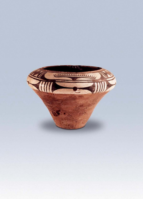 在世界所有文明的早期阶段,几乎都经历过一个陶器的时代,最早的中华文明也是如此。在中国早期陶器艺术中,最精彩的就是起源于六七千年以前的彩陶艺术,其中以仰韶文化(大约在公元前5000年—公元前3000年,几遍于华北各地区,而以黄河中游为中心)遗存的以橙红色或棕红色绘有深红或黑色花纹的彩陶最惹人注目,所以仰韶文化也有“彩陶文化”之称。