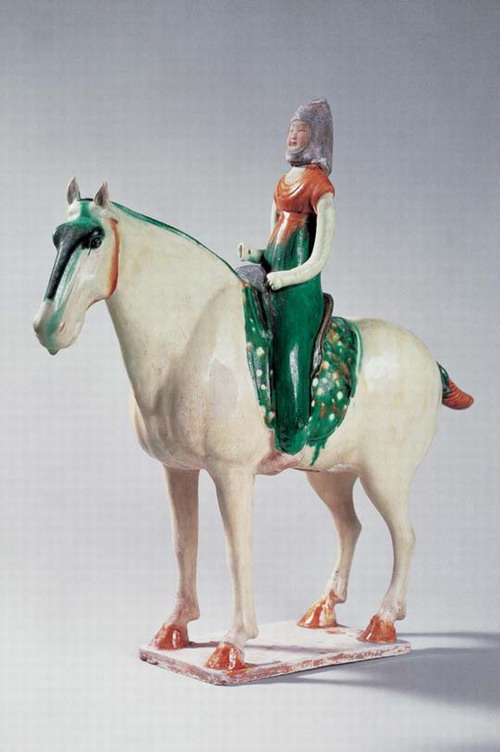 三彩陶器是唐代陶瓷中具有特殊作用和风格的一枝奇葩。在20世纪初期的一次考古发现中,人们在河南洛阳附近的一处古墓中,发现了大量的“唐三彩”明器,其独具风采的艺术形象再次驰名中外。