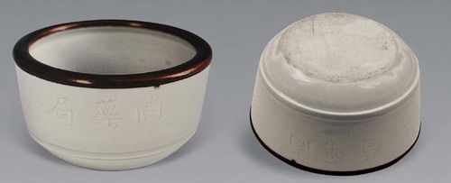 北宋定窑“尚药局”铭白釉小缸及底,瑞典ULRICEHAMNS东方艺术博物馆藏。