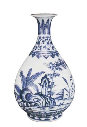 明宣德青花竹石芭蕉纹玉壶春瓶